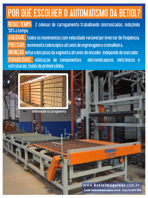 Em 1986, foi fundada a Betiol Máquinas e Equipamentos Ltda, por Benedito Betiol, com a função de suprir a industria cerâmica com produtos destinados à secagem, queima e movimentação de cargas, servindo com processos automatizados.